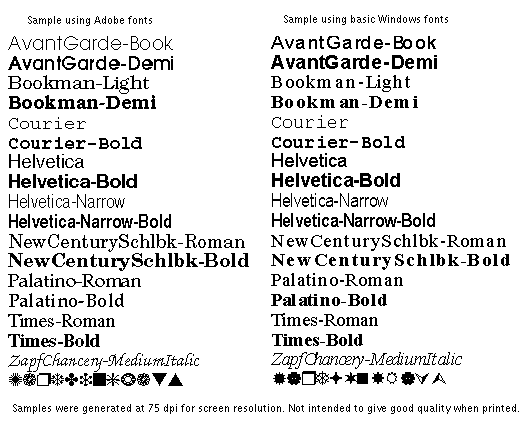 Most printers and other PostScript products offer limited control over font handling. A font may be included within a PostScript file, or may be built in to the printer. If the font cannot be found, most printers will substitute a single font (often Courier). This gives you no chance to maintain the look of a document.